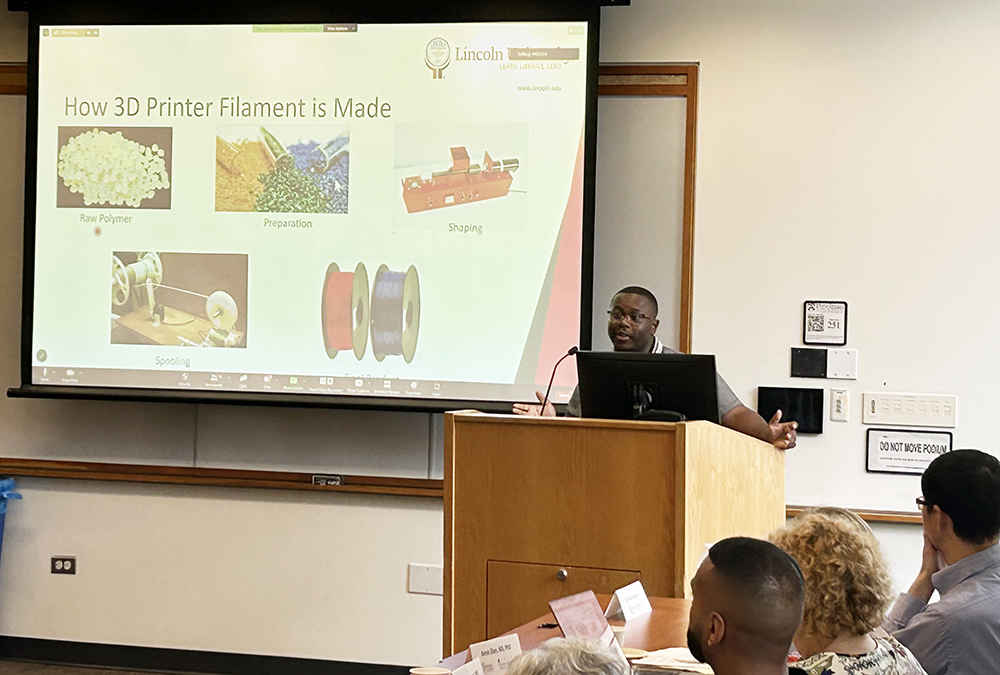 - Thomas Gluodenis, PhD, Associate Professor of Chemistry and Physics, and Zechariah Stephens of the Lincoln University of PA: Chemical Exposure and 3-D Printing Study